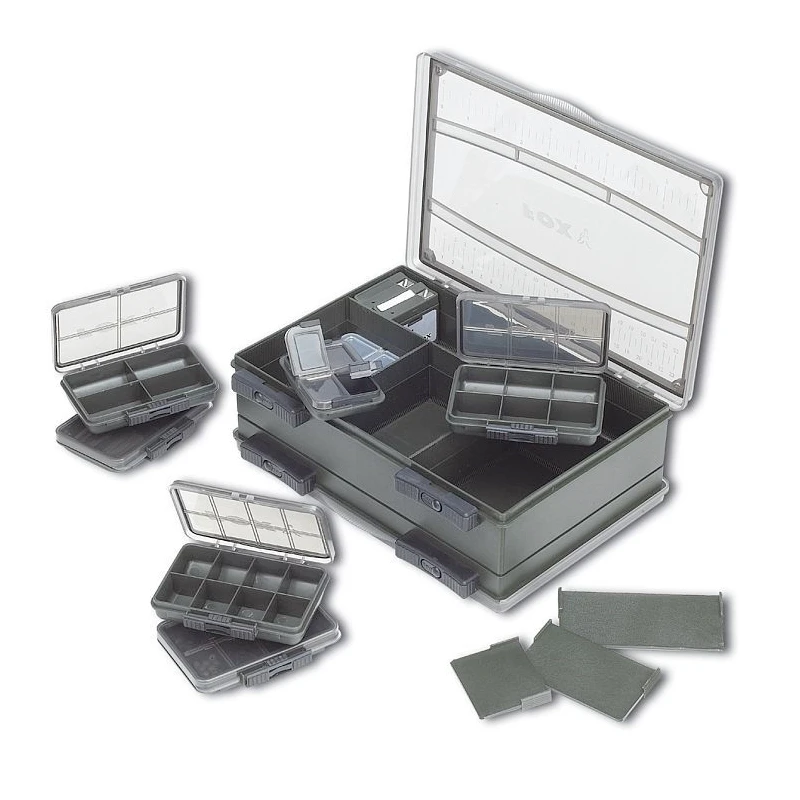 Das F-Box Deluxe Set ist komplett mit integrierten Aufbewahrungseinheiten ausgestattet, die für eine Vielzahl von Karpfenangeln Tackle-Artikeln ausgelegt sind. Die Box selbst basiert auf einem einzigartigen doppelseitigen Design, das den Stauraum maximiert und einen einfachen Zugang zu den Angelkomponenten ermöglicht.Die hochbelastbare, spritzgegossene Konstruktion ergibt ein stabiles und strapazierfähiges Design mit wasserdicht versiegelten Deckeln, langlebigen Scharnieren und zuverlässigen Schiebeverschlüssen. Die Größe der Fächer ist mit den mitgelieferten Trennwänden einstellbar und die Box wird komplett mit den folgenden Komponenten ausgestattet:Tiefes Fach Groß x 4Tiefes Fach Mittel x 3Tiefes Fach Klein x 3Tiefes Fach Groß x 4Tiefes Fach Klein x 4Schwimmbecken-Spender x 28 Fächer x 16 Fächer x 1Klapp-top x 24 Fach x 18 Fach Shallow x 14 Fach Shallow x 1