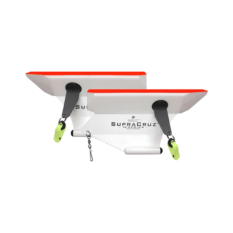 Gebaut, um der beste Paravane auf dem Markt für das Schleppangeln bei hohen Geschwindigkeiten, hohem Seegang, großen Ködern und langen Leinen zu sein. Diese Paravane verwenden Scotty’s Power Mini Grip.Mit SupraCruz haben sie eine andere, effizientere und jetzt sehr haltbare Version entwickelt, bei der die Federung hauptsächlich durch den Flügel erfolgt, der zwischen RTV-Silikon sitzt. Dies zusammen mit dem Design des Paravans aus transparentem Polycarbonat-Kunststoff bedeutet, dass er den meisten Dingen, denen man ihn aussetzt, standhält. Und das trotz seines sehr geringen Gewichts.